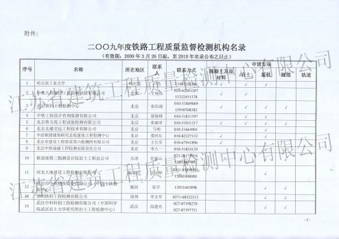 | 中心被列入《2009年度鐵路工程質量監督檢測機構名錄》的通知 |