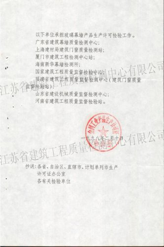 | 幕墻門窗產(chǎn)品生成許可證檢驗單位 |