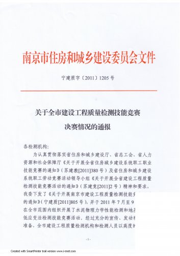 | 南京市住房和城鄉(xiāng)建設(shè)委員會(huì)《關(guān)于全市建設(shè)工程質(zhì)量檢測(cè)技能競(jìng)賽決賽情況的通報(bào)》 |