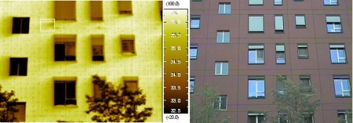![]() 紅外熱像法檢測某試驗樓外墻飾面粘結質量(多處出現空鼓) 紅外熱像法檢測建筑節能構造缺陷