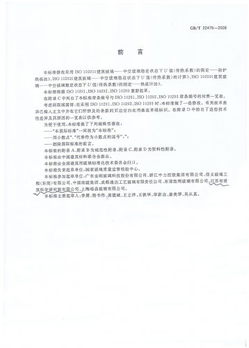 | 公司參與編制《中空玻璃穩態U值(傳熱系數)的計算及測定》 |