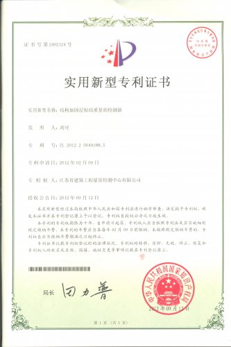| 公司自主知識產權“結構加固層粘結質量的檢測器”取得專利 |