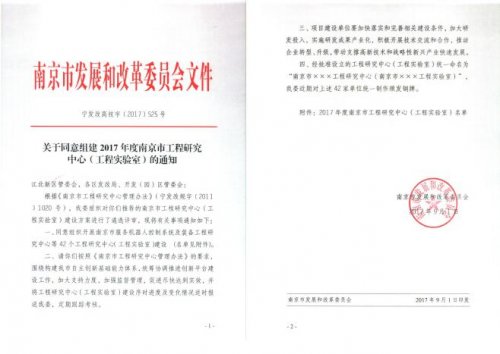 | 中心獲批“南京市工程研究中心(工程實驗室)” |