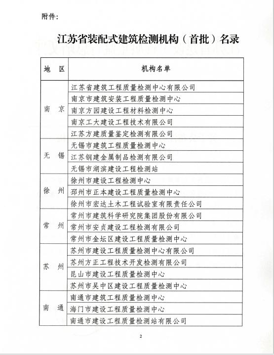 | 中心成功入選首批“江蘇省裝配式建筑檢測機構” |