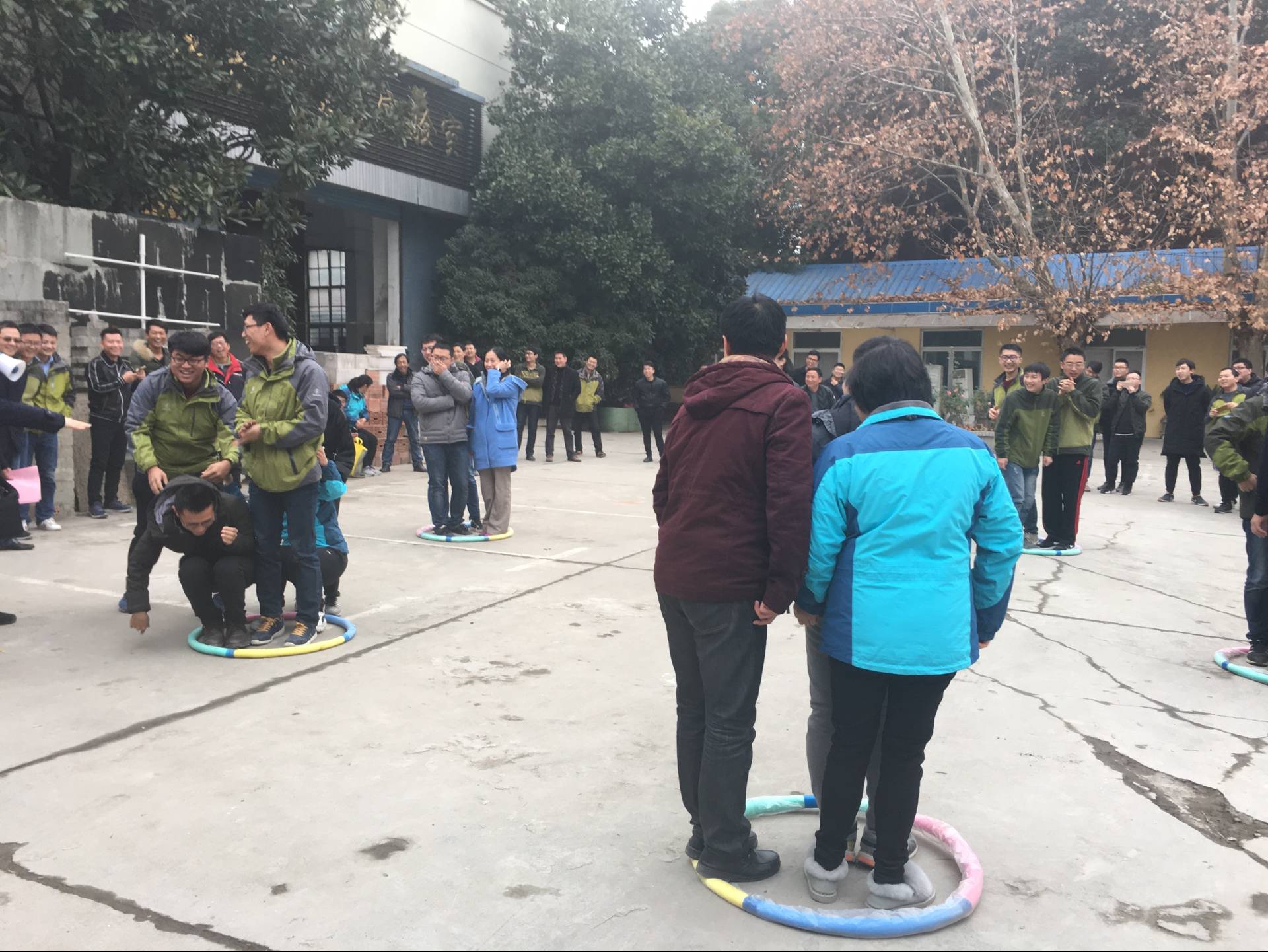 為進一步增強員工交流,提升員工的團隊協作能力,豐富員工業余生活,中心于2017年12月29日下午在公司一樓院子里舉辦了迎新年趣味運動會。本次運動會以工會小組為單位組成比賽隊伍,比賽內容結合競技與娛樂,側重員工之間的參與和交流,比賽項目豐富,趣味性十足,涵蓋了多人跳繩、雙人運球、爭分奪秒搶呼啦圈、踢毽子比賽、慢騎大賽和拔河共6個項目。 12月的南京,陰翳的天空下,冷風嗖嗖的吹著。可是,員工們看上去卻沒有一絲涼意,每個人都在賽場上或奮力拼搏或加油打氣,呈現出一片熱鬧的景象。在多人跳繩的比賽中,可以看到參賽隊員們跳繩時輕快靈活的身影;在雙人運球比賽中,很多隊員在排球掉落要求重來幾遍時任然堅持不懈,爭取將球運到終點;在爭奪呼啦圈的比賽中,男女隊員共同參加,現場的笑聲呼聲讓比賽的氛圍更加活躍;在進行趣味踢毽子的比賽現場可以欣賞到參賽者們優雅暢快的英姿;在慢騎大賽中,比慢不比快的規則做出來的各種騎車方式讓現場忍俊不禁,笑聲一陣接一陣;最后的拔河比賽更是體現了團隊拼搏鍥而不舍的拼搏精神。 中心員工們在運動中釋放壓力,在輕松愉悅又不乏激烈刺激的氛圍中,身體得到鍛煉,心情得到放松。通過本次趣味運動會活動,豐富了員工們的文化生活,促進了員工之間的感情交流,增進了友誼的同時也培養和增強了員工們的團隊合作精神和集體榮譽感。大家紛紛表示今后將繼續以飽滿的熱情和高昂的斗志為中心的發展添磚加瓦! 跳繩比賽 拔河比賽 爭分奪秒搶呼啦圈 |
